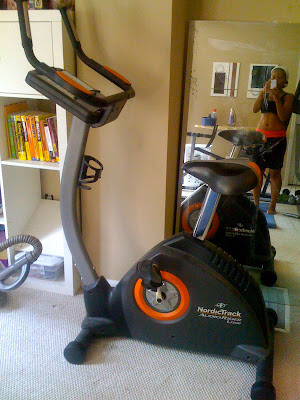 The exercise bike that I just started using. The mirror is actually from when we were remodeling our bathroom (which is still under construction). I really like having it there when I workout...especially during yoga.